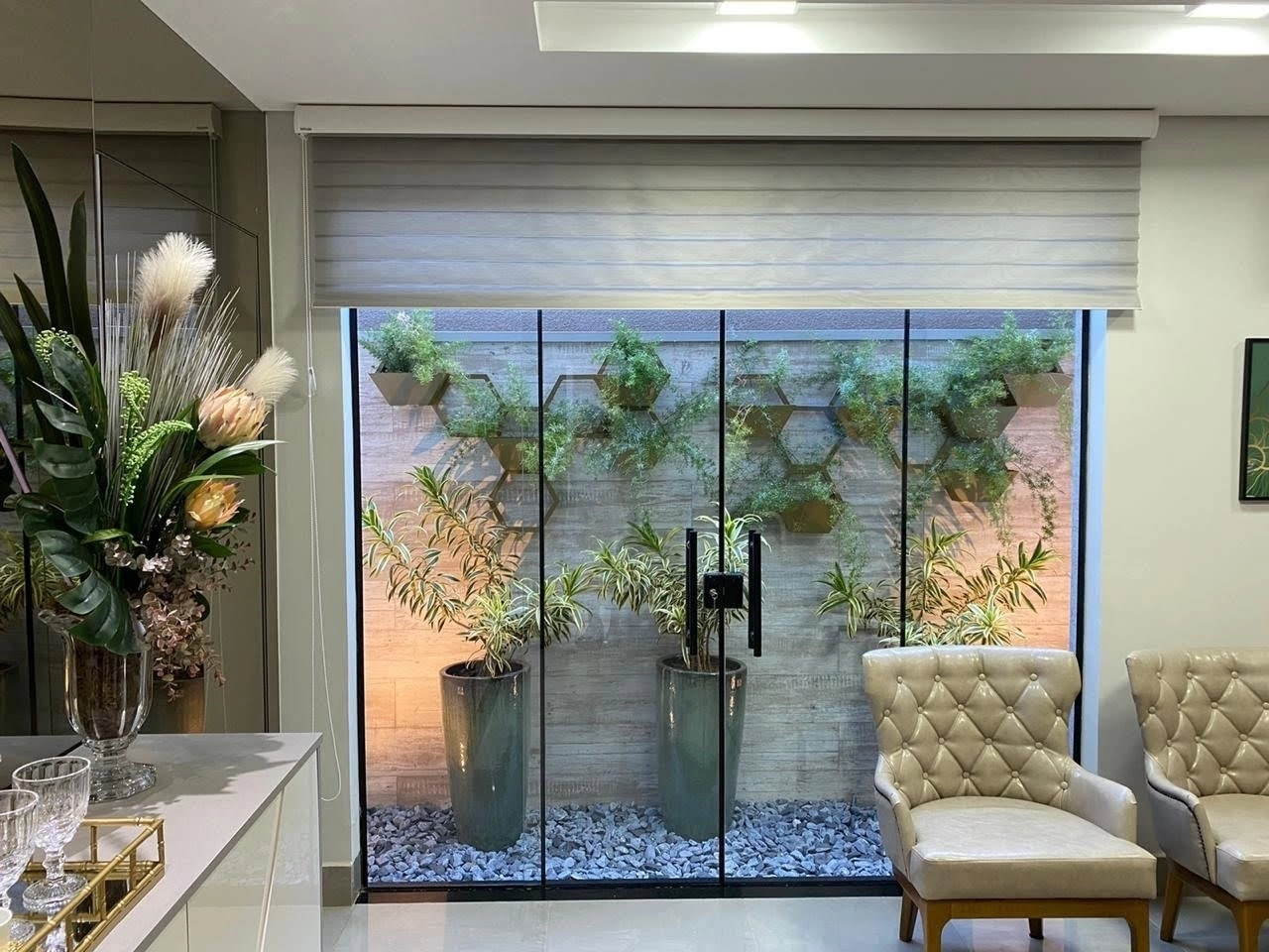 Foto 05: Foto executada de uma residência de auto padrão, pacote de projetos que contemplou o a arquitetura, interiores e paisagismo. Projeto autoral de paisagismo do escritório de arquitetura Adriana Lima Arquitetura & Interiores.